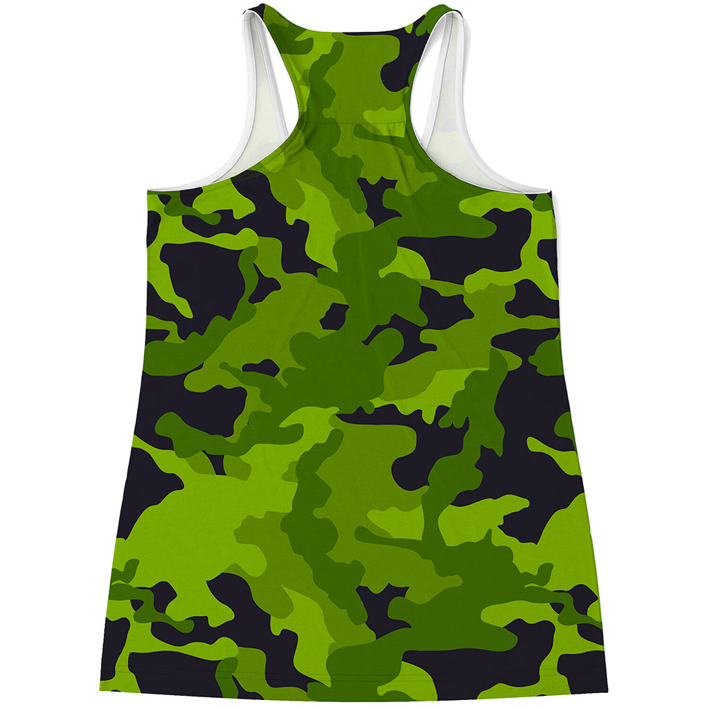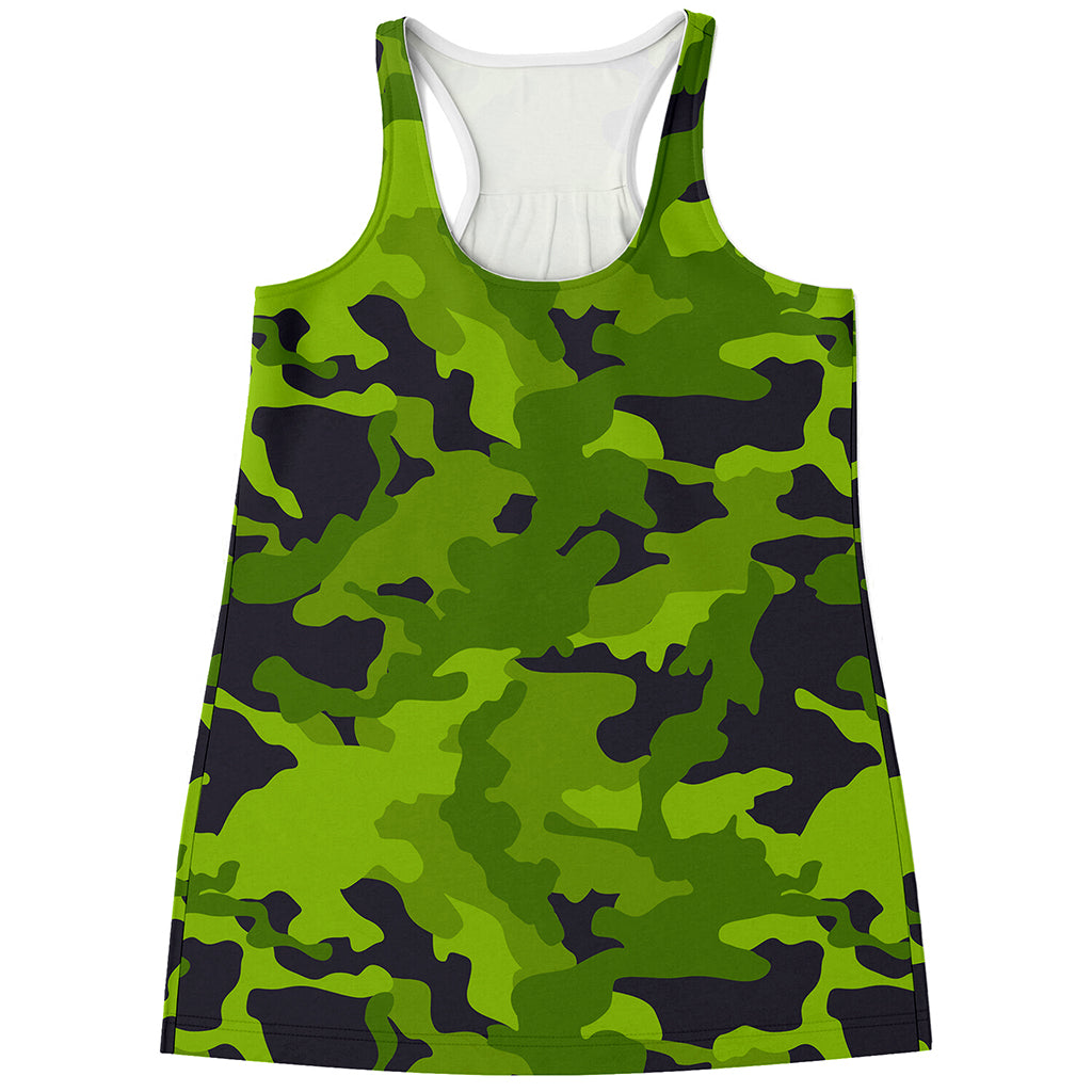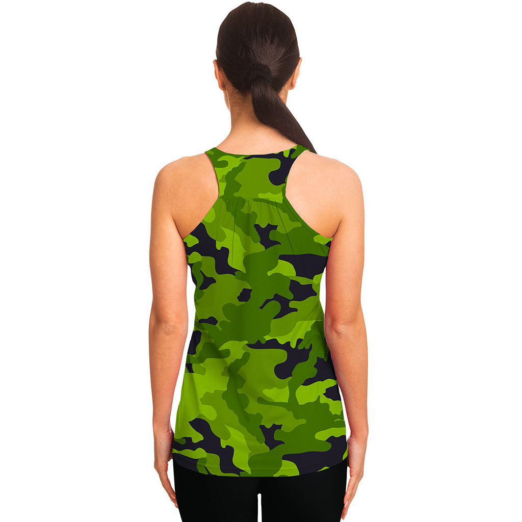 Stay cool and stylish with the versatile Lime Green Camouflage Print Women's Racerback Tank Top. Designed for women who prioritize comfort and functionality, this racerback tank top is the perfect addition to your active and casual wardrobe. Whether you’re working out, running errands, or relaxing at home, this tank top offers a sleek and flattering fit that keeps you looking great and feeling confident.