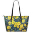 Black Sunflower Pattern Print Leather Tote Bag With Zipper