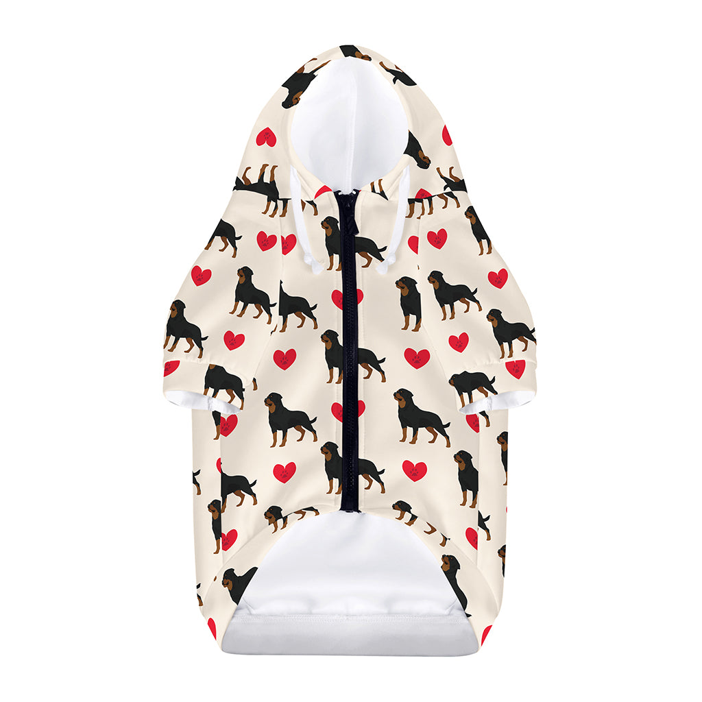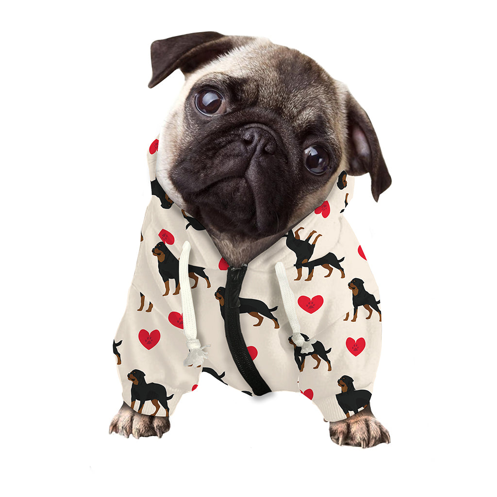 The Love Rottweiler Pattern Print Dog Zip Up Hoodie is more than just pet clothing—it’s a way to express your style while offering practical benefits. From lounging at home to neighborhood strolls, this hoodie provides an easy wardrobe addition for pets that don't mind dressing up.