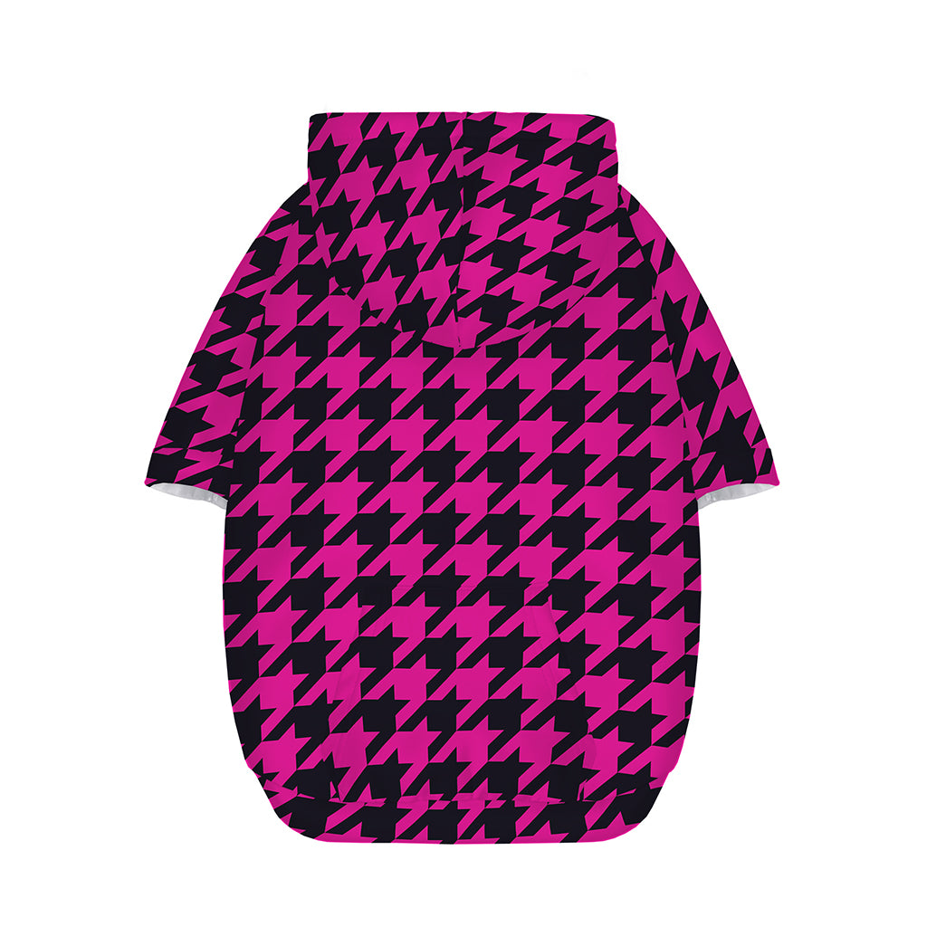 The Magenta Pink And Black Houndstooth Print Dog Zip Up Hoodie is more than just pet clothing—it’s a way to express your style while offering practical benefits. From lounging at home to neighborhood strolls, this hoodie provides an easy wardrobe addition for pets that don't mind dressing up.
