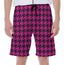 Are you looking for unique men's beach shorts? Check our Magenta Pink And Black Houndstooth Print Men's Beach Shorts on GearFrost. Our shorts are handcrafted to the highest quality standards and made-to-order for you!