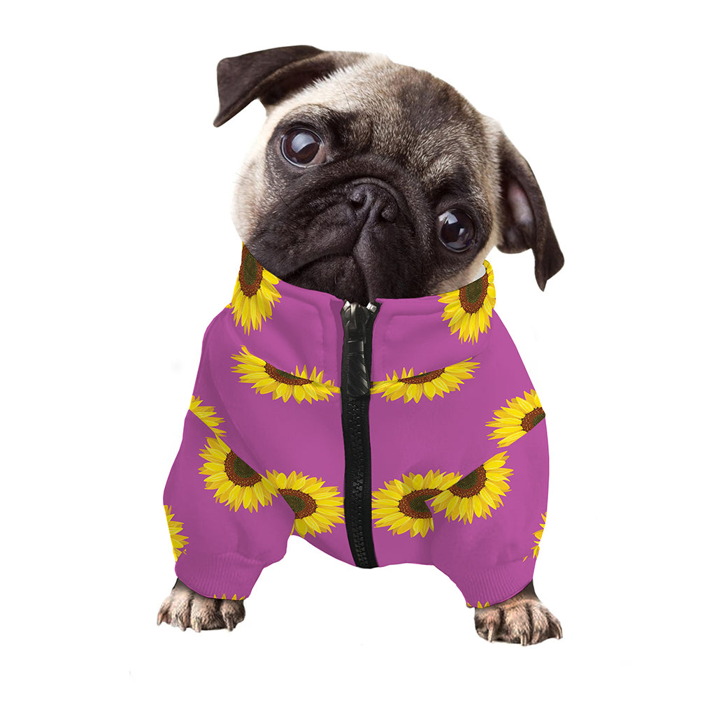 The Magenta Pink Sunflower Pattern Print Dog Zip Up Jacket makes everyday walks, car rides, or casual moments at home more enjoyable. Its lightweight build ensures your pet won’t feel restricted, while its clean design adds a hint of personality without going over the top.