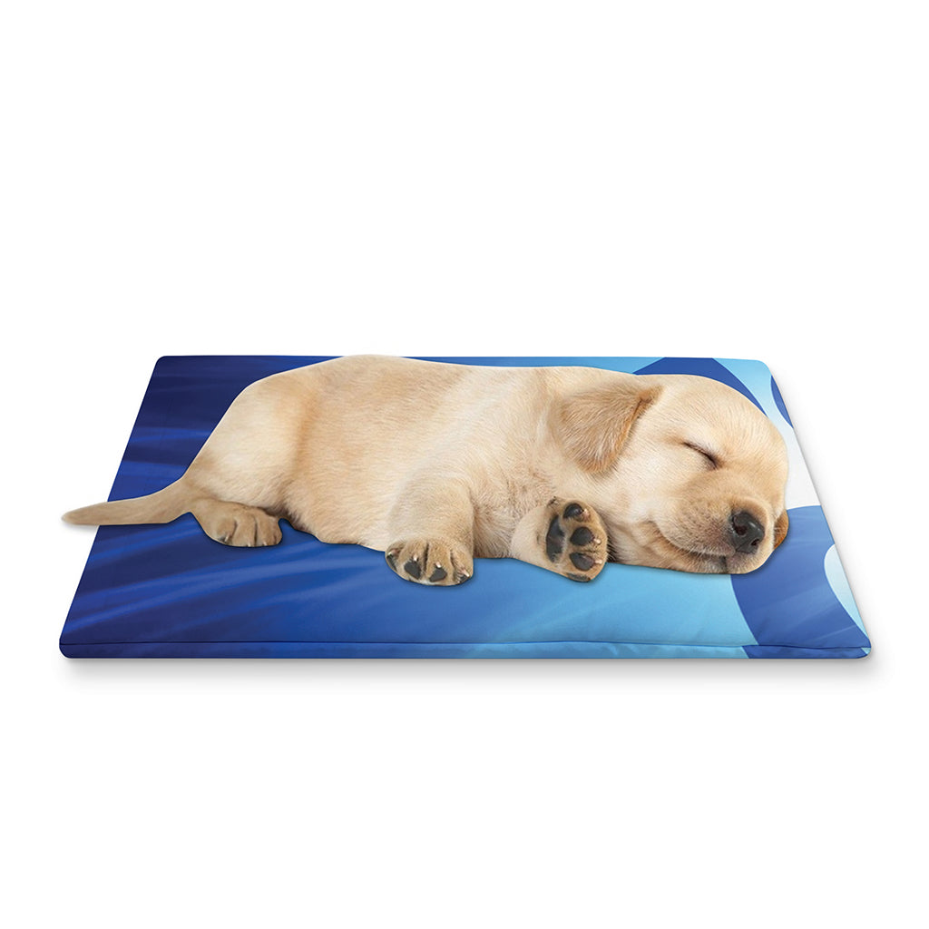 The Mantra Om Print Pet Cooling Mat Cover is ideal for small to medium-sized pets such as cats and dogs. Whether placed in a crate, on the floor, or in your car, it adds comfort without requiring any complex setup. It's a practical choice for pet owners looking for something stylish, functional, and easy to maintain.