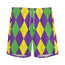 Mardi Gras Argyle Pattern Print Men's Sports Shorts