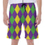 Mardi Gras Argyle Pattern Print Men's Shorts