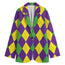 Mardi Gras Argyle Pattern Print Women's Cotton Blazer