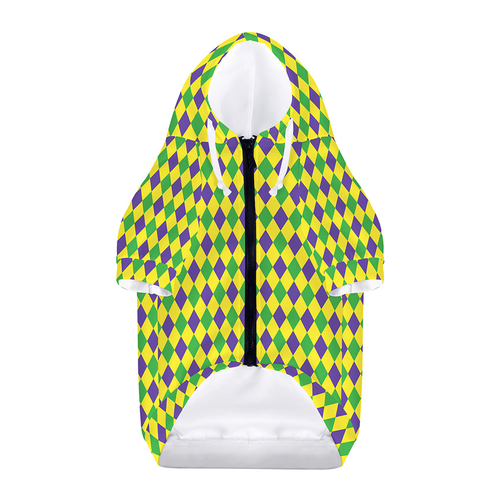 The Mardi Gras Fat Tuesday Pattern Print Dog Zip Up Hoodie is more than just pet clothing—it’s a way to express your style while offering practical benefits. From lounging at home to neighborhood strolls, this hoodie provides an easy wardrobe addition for pets that don't mind dressing up.