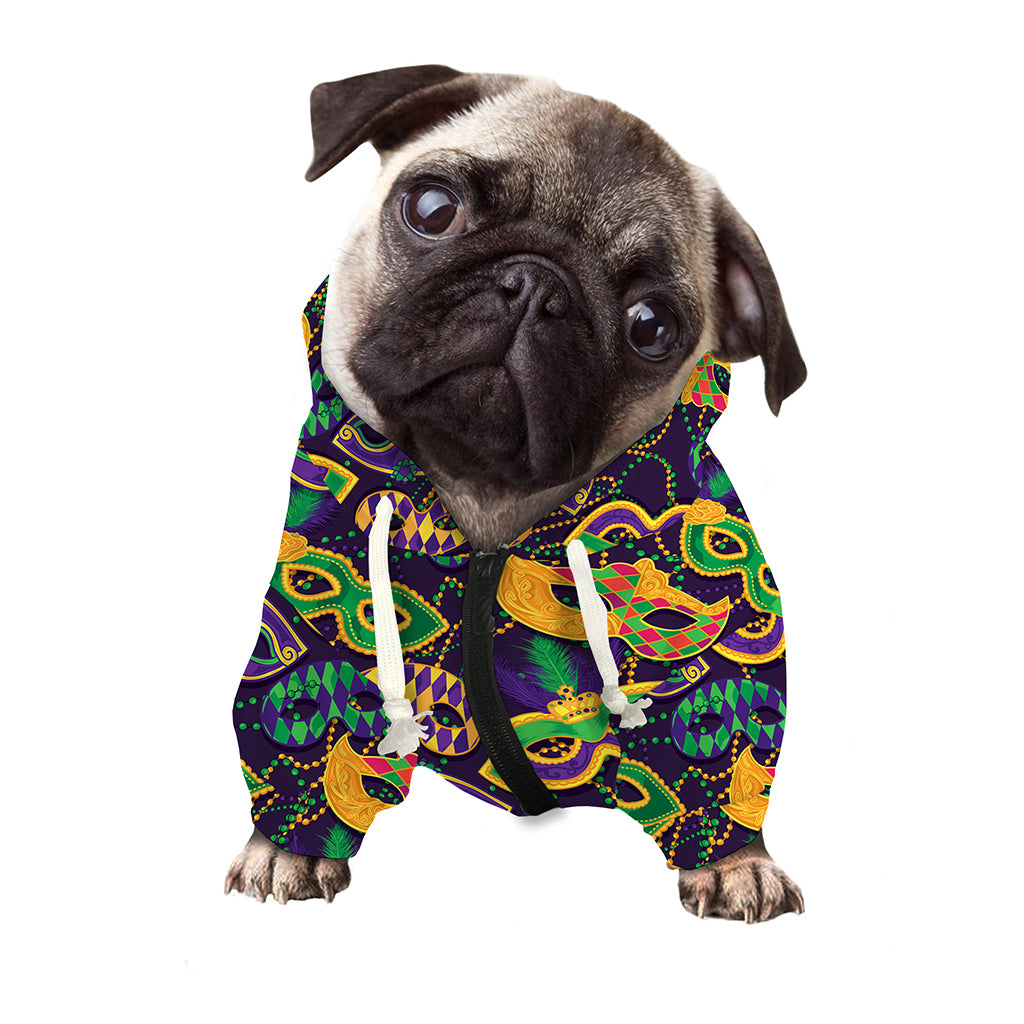 The Mardi Gras Festival Pattern Print Dog Zip Up Hoodie is more than just pet clothing—it’s a way to express your style while offering practical benefits. From lounging at home to neighborhood strolls, this hoodie provides an easy wardrobe addition for pets that don't mind dressing up.