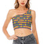 Mardi Gras Harlequin Pattern Print One Shoulder Crop Top