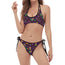 Rose Sugar Skull Pattern Print Halter Scoop Tie Side Bikini