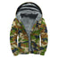 Military Green Camouflage Print Sherpa Lined Zip Up Hoodie
