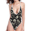 Monochrome Dinosaur Fossil Pattern Print One Piece High Cut Swimsuit