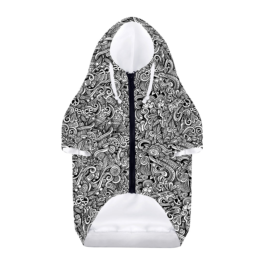 The Monochrome Graffiti Hippie Pattern Print Dog Zip Up Hoodie is more than just pet clothing—it’s a way to express your style while offering practical benefits. From lounging at home to neighborhood strolls, this hoodie provides an easy wardrobe addition for pets that don't mind dressing up.