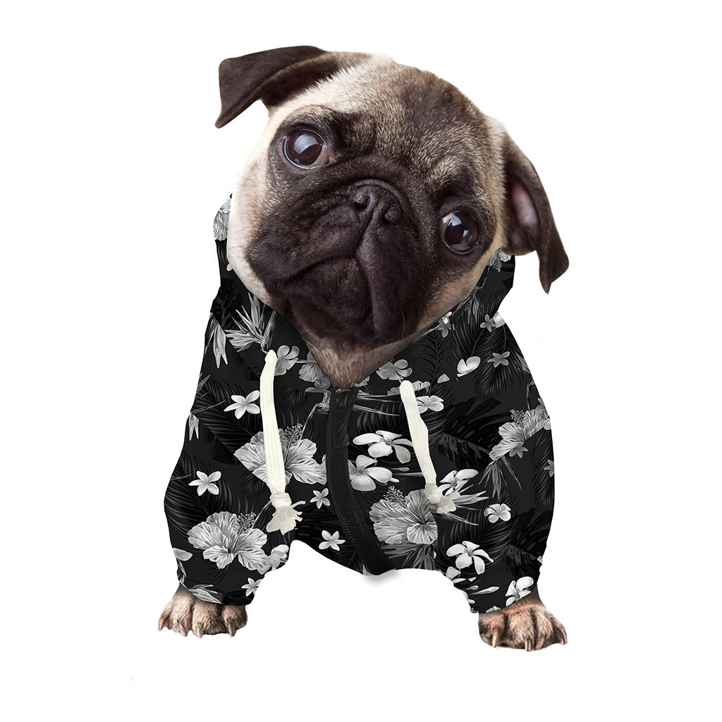 The Monochrome Hawaiian Floral Print Dog Zip Up Hoodie is more than just pet clothing—it’s a way to express your style while offering practical benefits. From lounging at home to neighborhood strolls, this hoodie provides an easy wardrobe addition for pets that don't mind dressing up.
