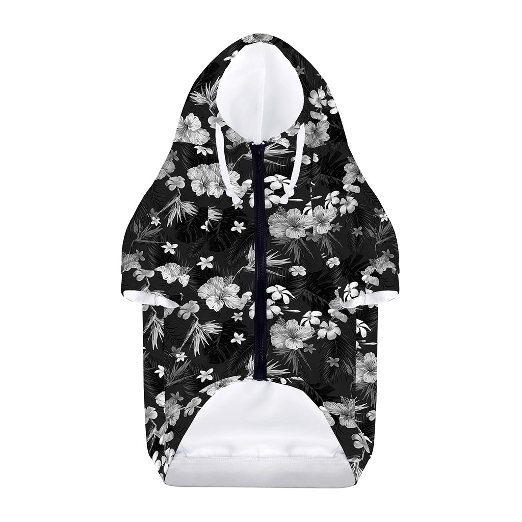 Keep your pet cozy and stylish with the Monochrome Hawaiian Floral Print Dog Zip Up Hoodie. Designed for everyday wear, this lightweight hoodie provides comfort and a bit of flair without overcomplicating your pet’s routine. Whether you're heading out for a walk or relaxing at home, it's a simple way to keep your furry friend warm and snug.
