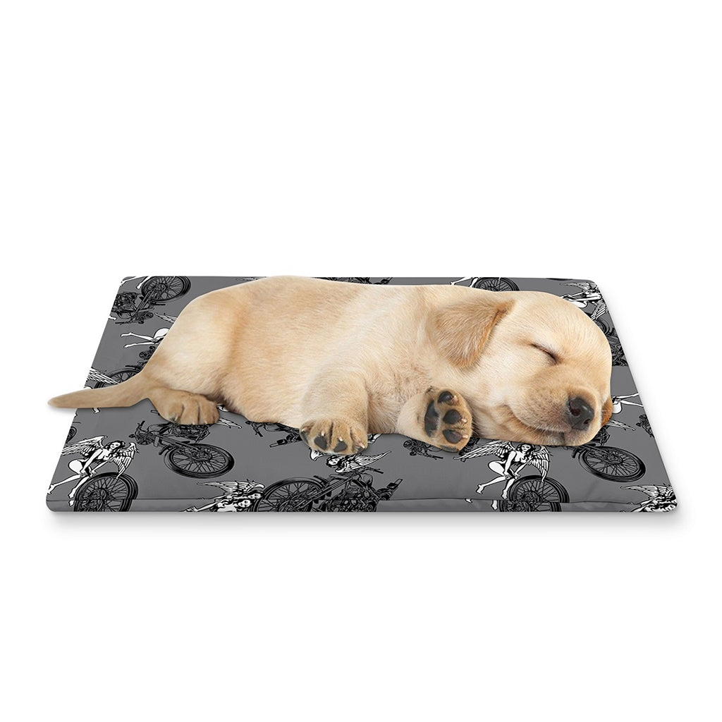 The Motorcycle And Angel Pattern Print Pet Cooling Mat Cover is ideal for small to medium-sized pets such as cats and dogs. Whether placed in a crate, on the floor, or in your car, it adds comfort without requiring any complex setup. It's a practical choice for pet owners looking for something stylish, functional, and easy to maintain.