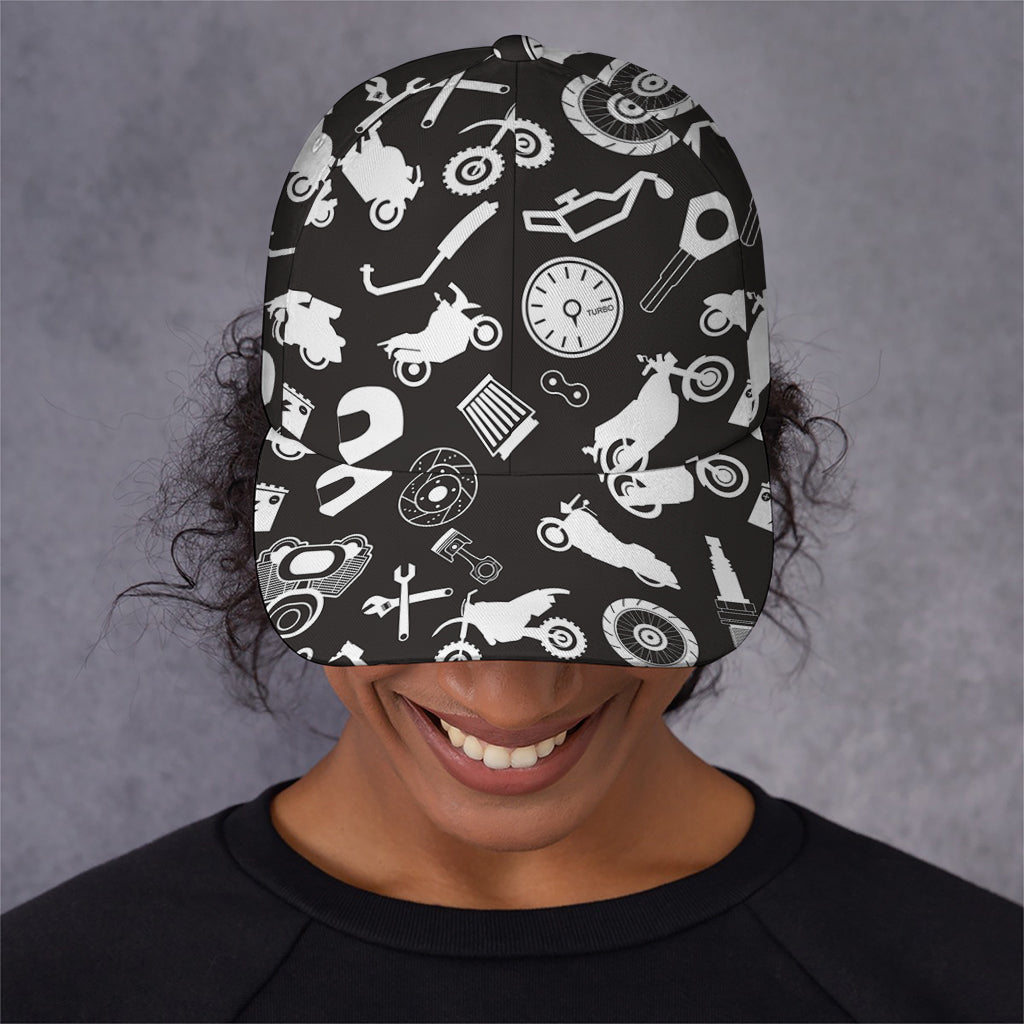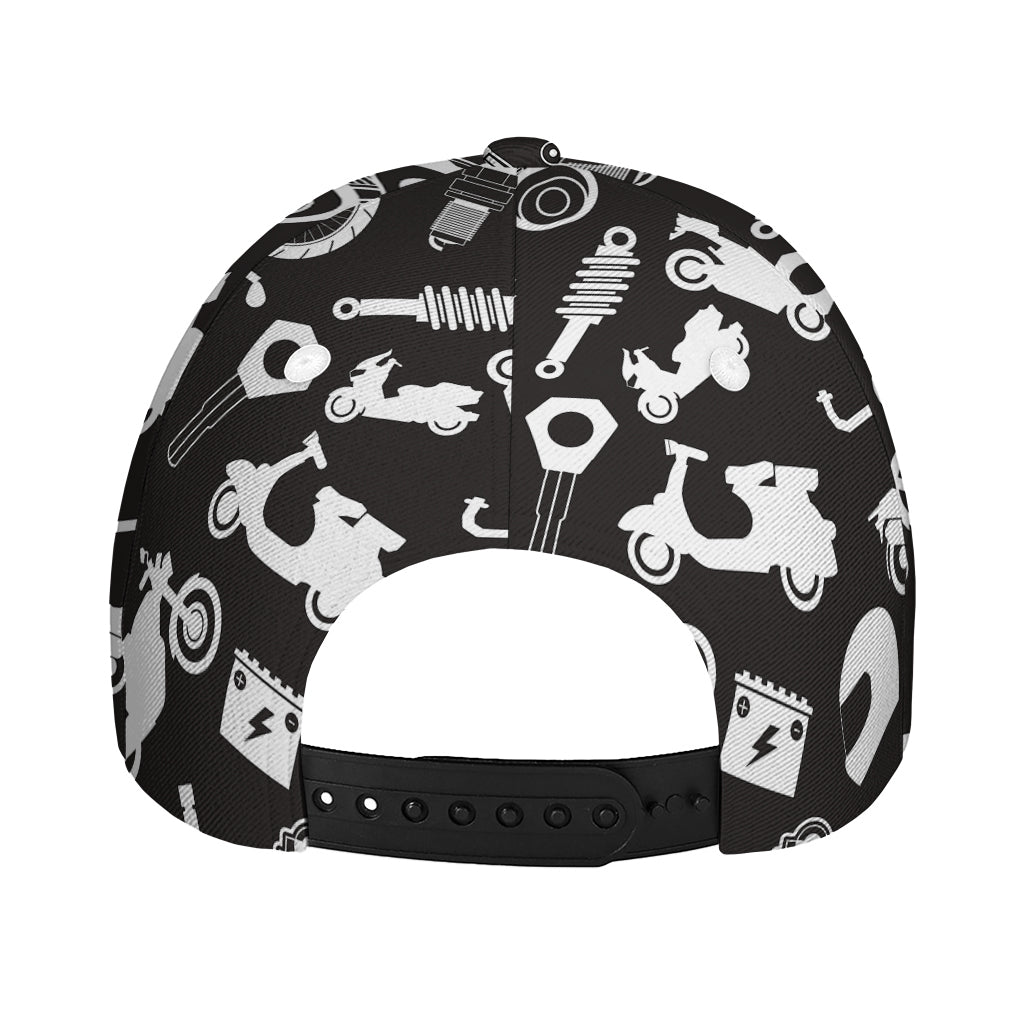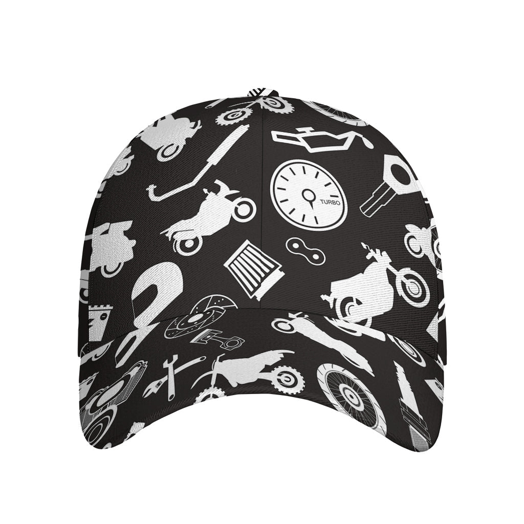 Top off your look with the stylish and functional Motorcycle Equipment Pattern Print Baseball Cap. Designed for comfort and durability, this baseball cap is the perfect accessory for casual outings, outdoor activities, or simply elevating your everyday style. Its sleek design and practical features make it a wardrobe essential for anyone who values both form and function.