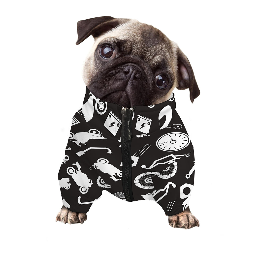 Give your pet a touch of comfort and casual style with the Motorcycle Equipment Pattern Print Dog Zip Up Jacket. This lightweight jacket is designed for everyday wear, offering basic warmth and a cozy fit for your furry companion without compromising ease or simplicity.