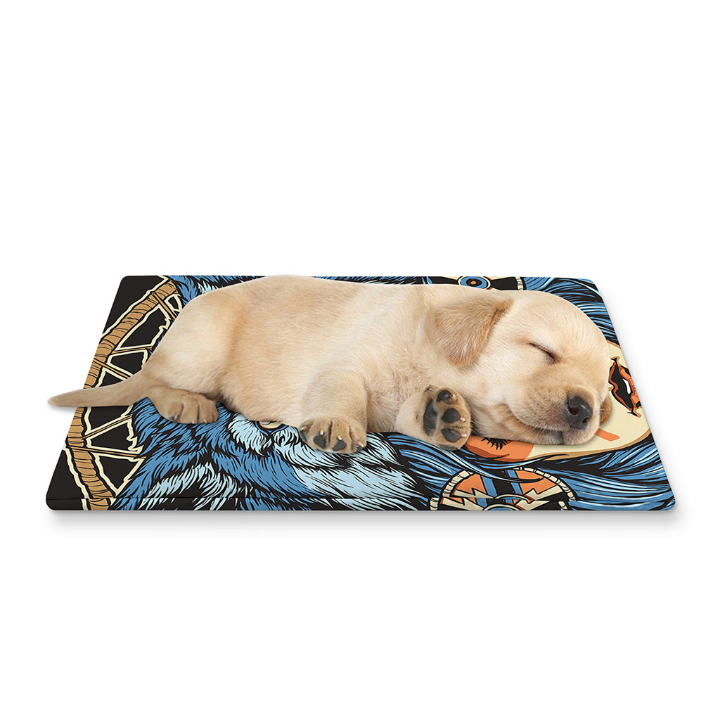 The Native American Wolf Girl Print Pet Cooling Mat Cover is ideal for small to medium-sized pets such as cats and dogs. Whether placed in a crate, on the floor, or in your car, it adds comfort without requiring any complex setup. It's a practical choice for pet owners looking for something stylish, functional, and easy to maintain.