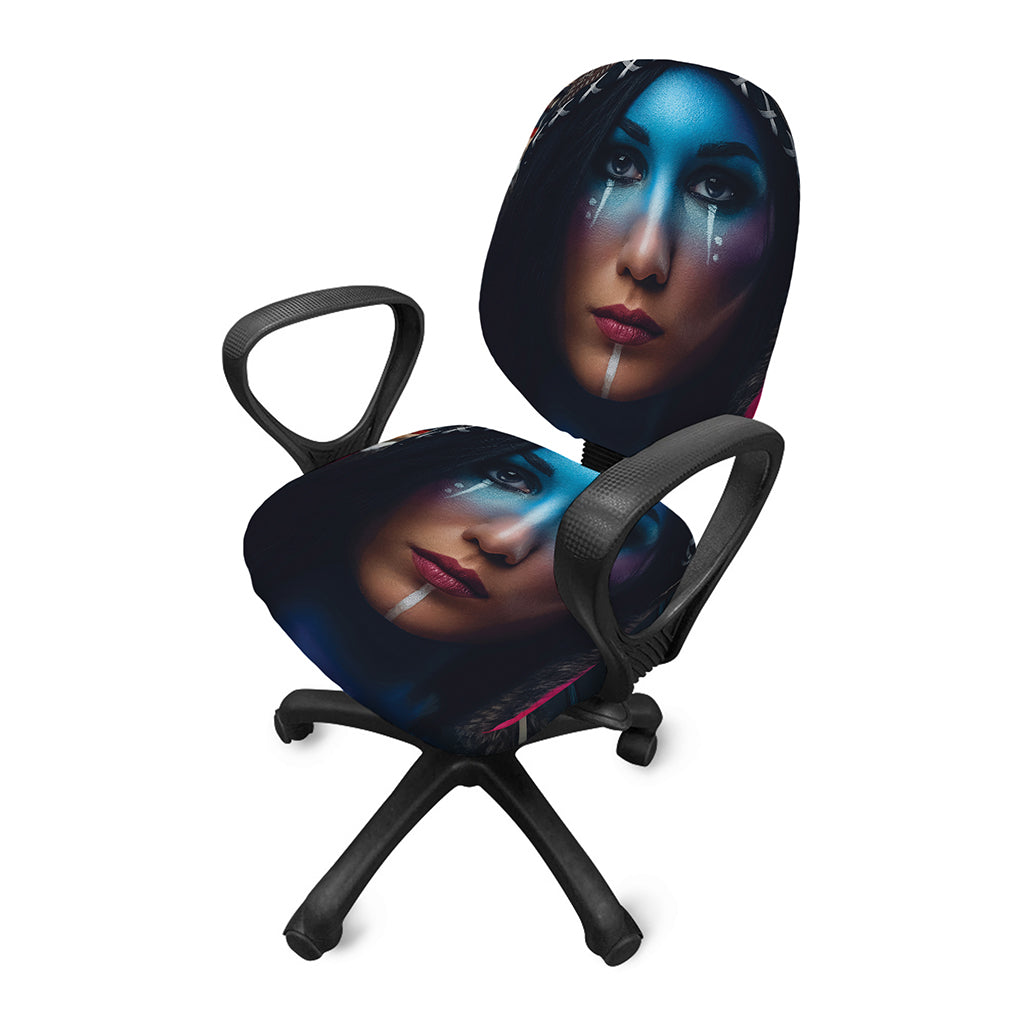 Are you looking for unique office chair covers? Check our Native Indian Woman Portrait Print Office Chair Cover on GearFrost. Our office chair covers are handcrafted to the highest quality standards and made-to-order for you!