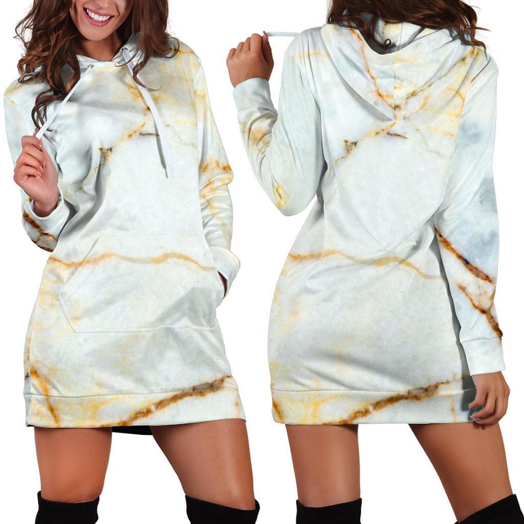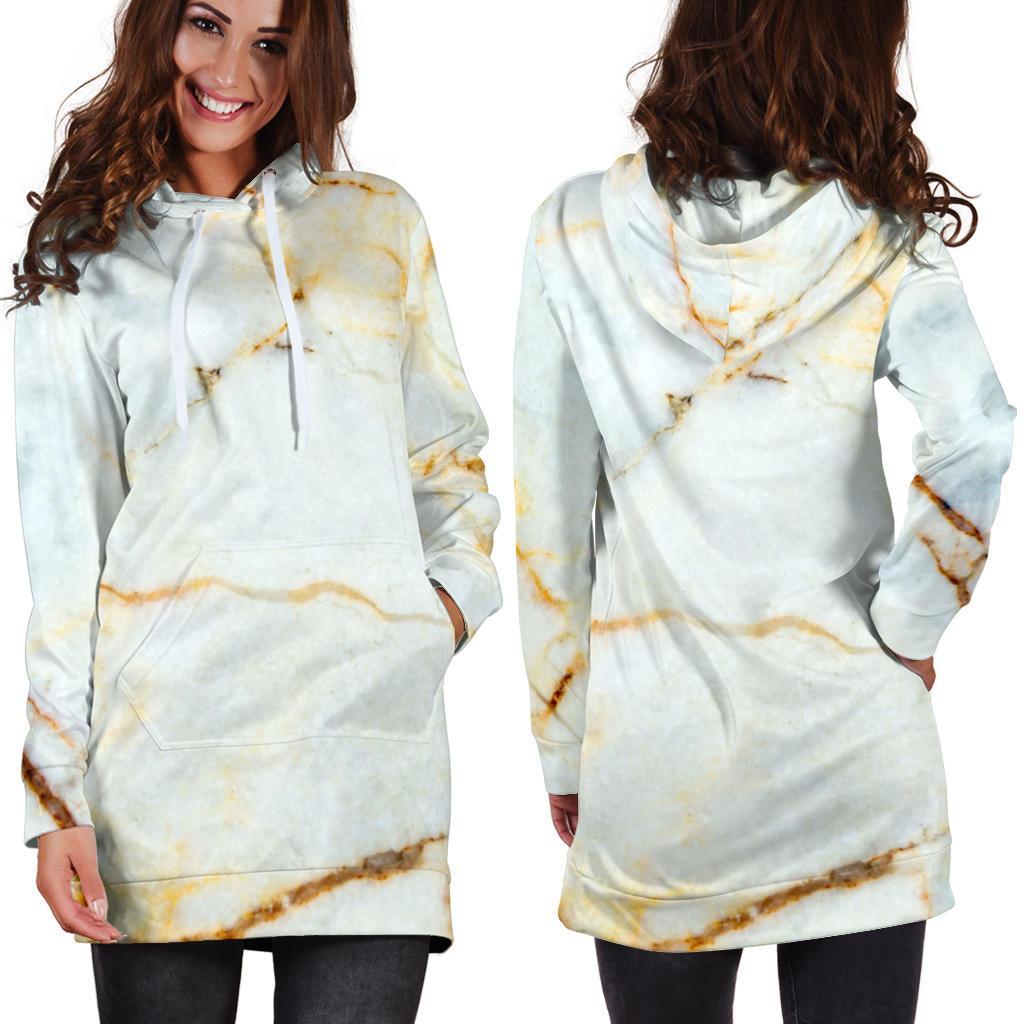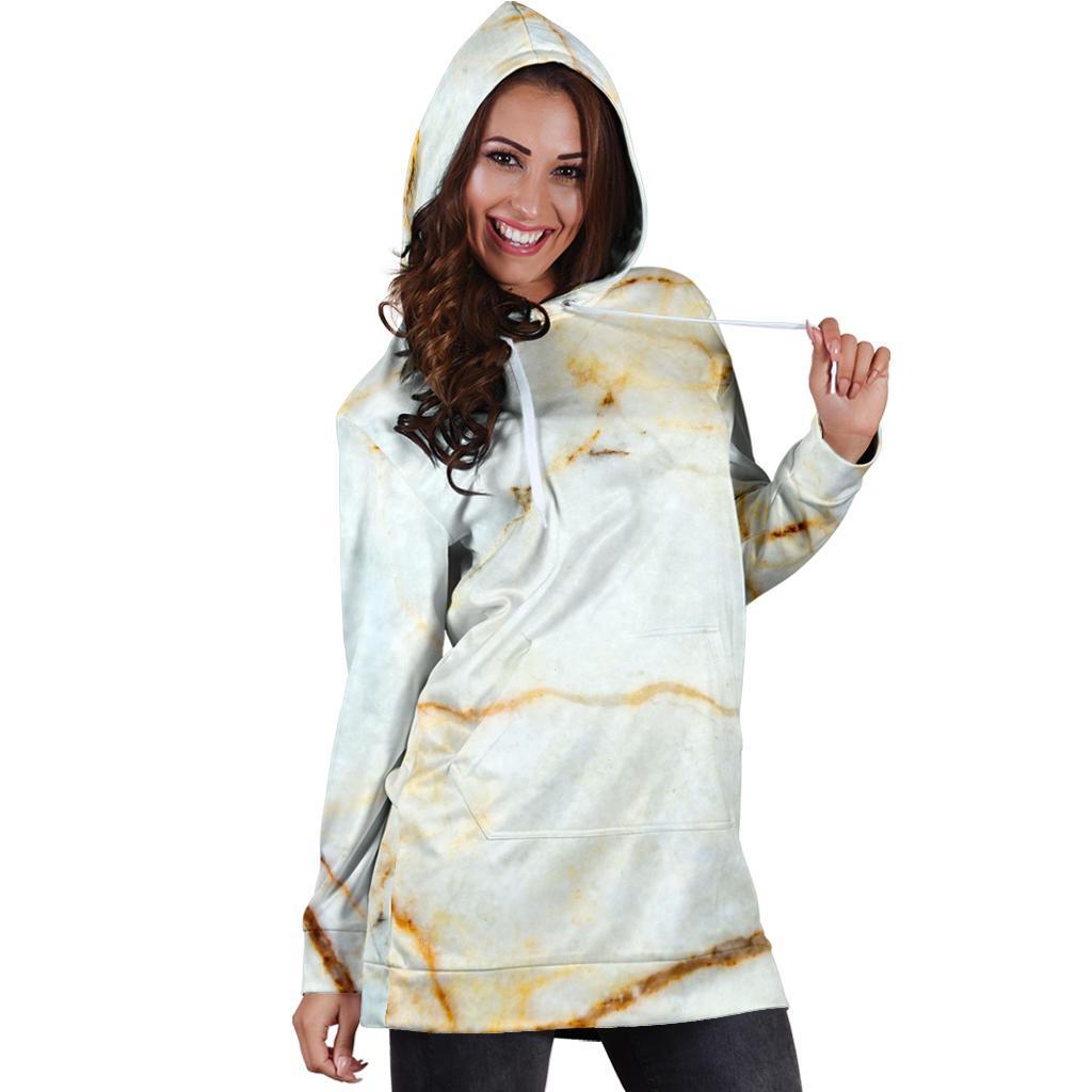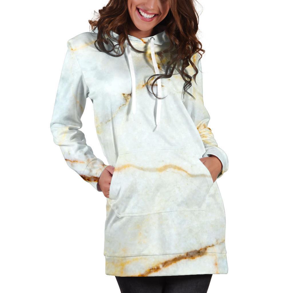 Are you looking for unique hoodie dresses? Check our Natural Gold Marble Print Pullover Hoodie Dress on GearFrost. Our hoodie dresses are handcrafted to the highest quality standards and made-to-order for you!