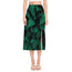 Natural Green Leaf Print Side Slit Midi Skirt
