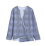 Navy Blue Prince of Wales Check Print Long Sleeve Short Coat