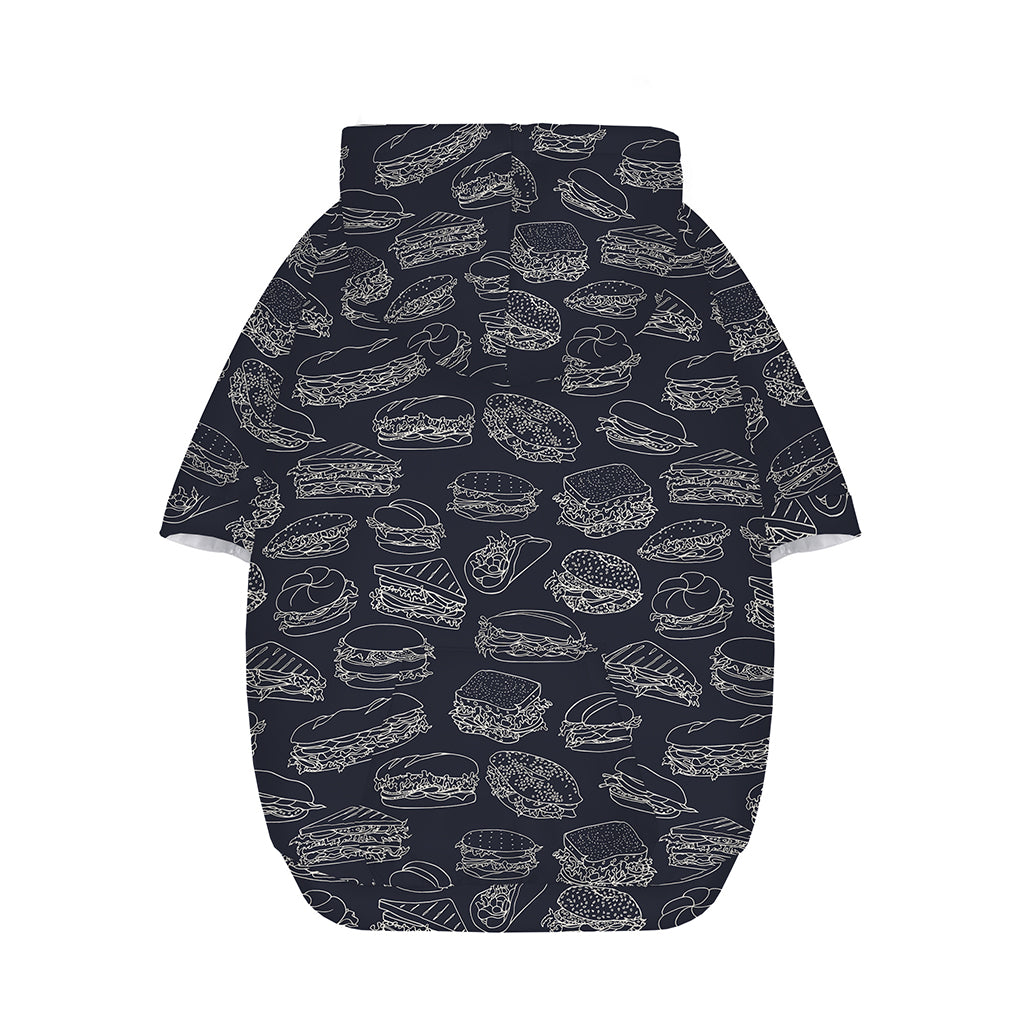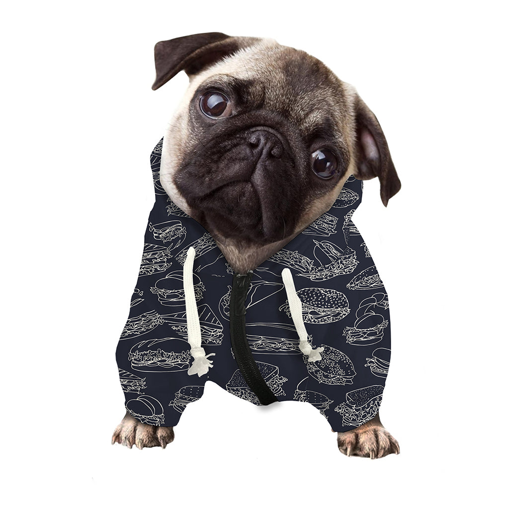 The Navy Doodle Sandwich Pattern Print Dog Zip Up Hoodie is more than just pet clothing—it’s a way to express your style while offering practical benefits. From lounging at home to neighborhood strolls, this hoodie provides an easy wardrobe addition for pets that don't mind dressing up.