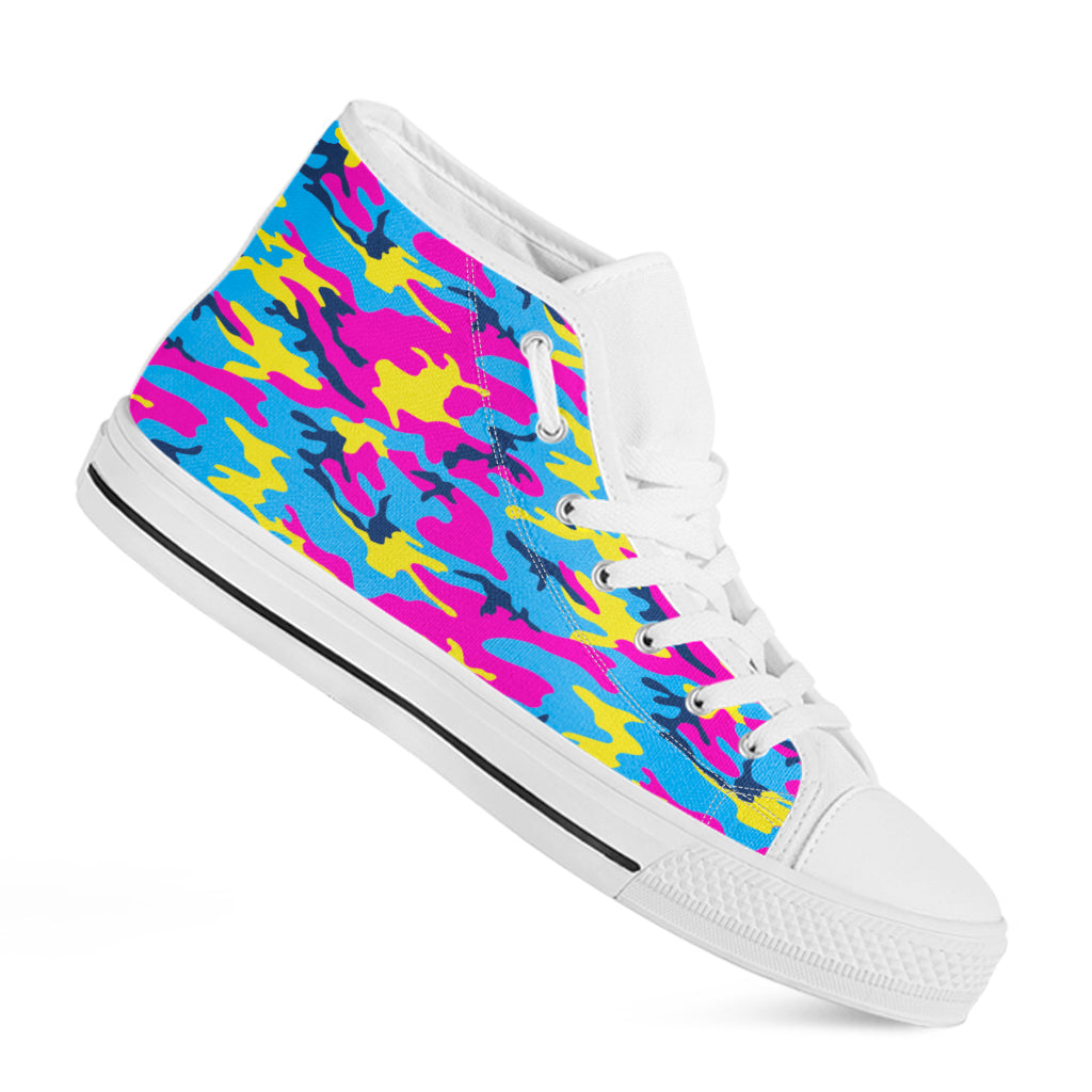 Are you looking for unique sneakers? Check our Neon Camouflage Print White High Top Sneakers on GearFrost. Our sneakers are handcrafted to the highest quality standards and made-to-order for you!