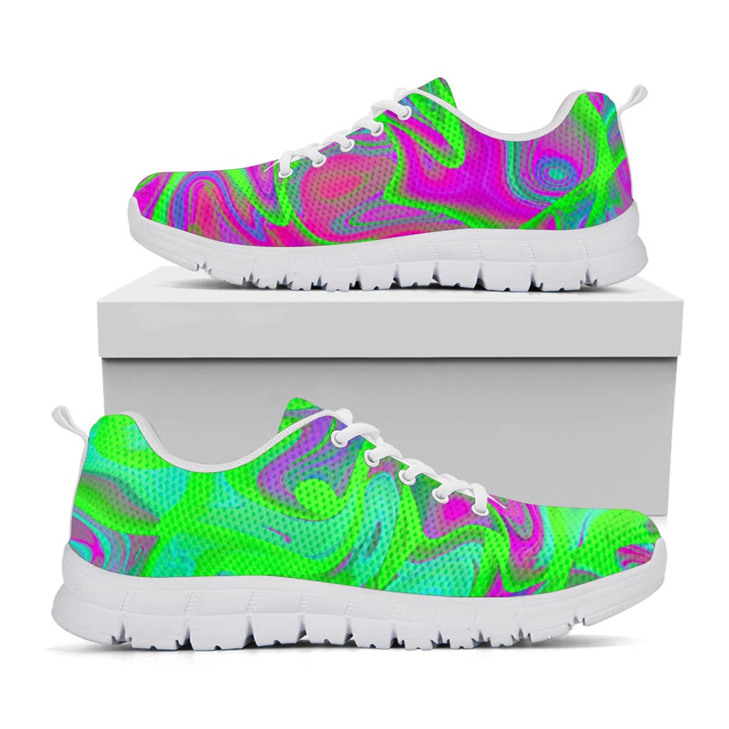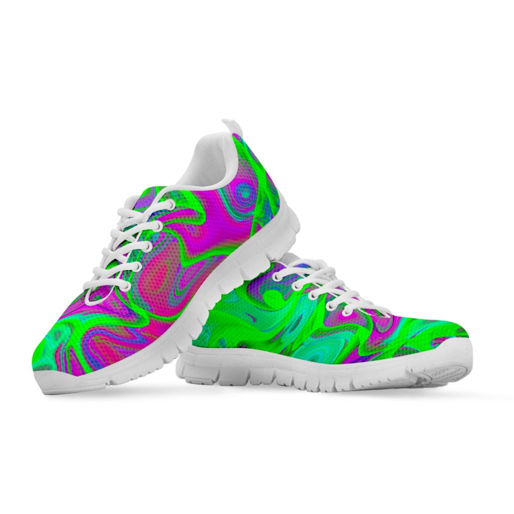 Are you looking for unique shoes? Check our Neon Green Pink Psychedelic Trippy Print White Running Shoes on GearFrost. Our shoes are handcrafted to the highest quality standards and made-to-order for you!