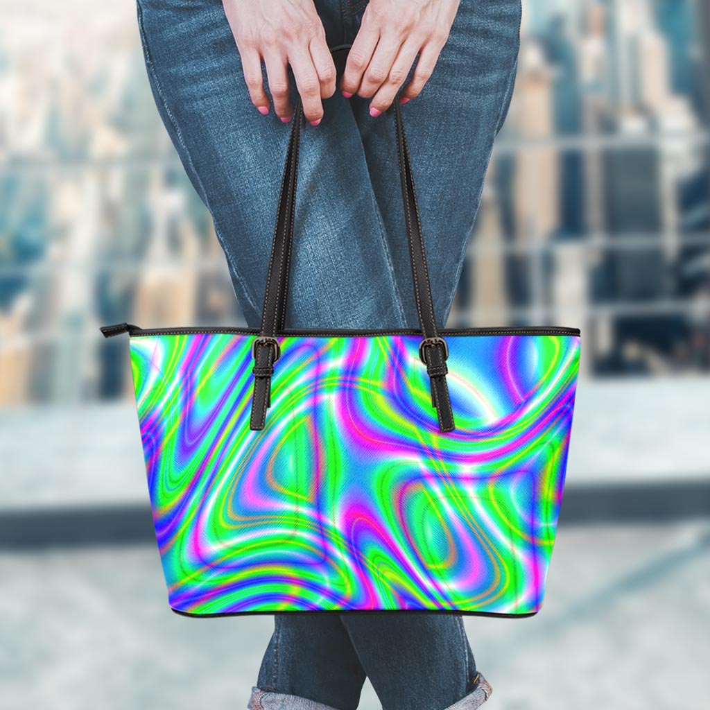 Are you looking for unique leather tote bags? Check our Neon Green Psychedelic Trippy Print Leather Tote Bag With Zipper on GearFrost. Our tote bags are handcrafted to the highest quality standards and made-to-order for you!