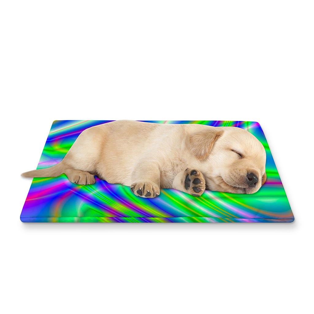 The Neon Green Psychedelic Trippy Print Pet Cooling Mat Cover is ideal for small to medium-sized pets such as cats and dogs. Whether placed in a crate, on the floor, or in your car, it adds comfort without requiring any complex setup. It's a practical choice for pet owners looking for something stylish, functional, and easy to maintain.