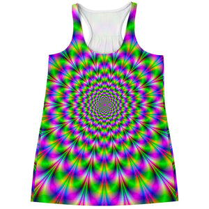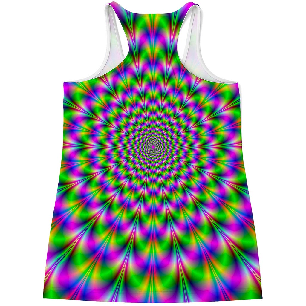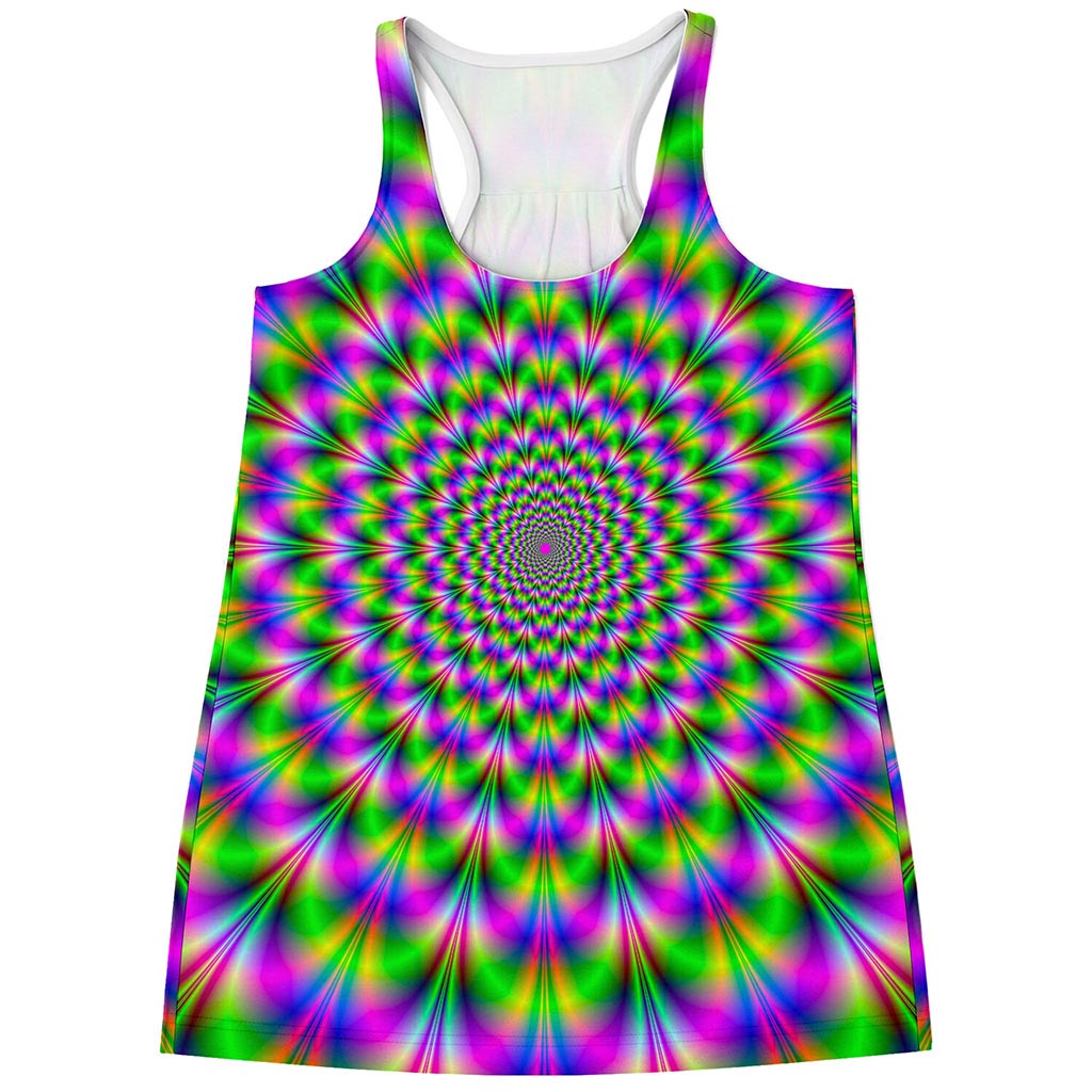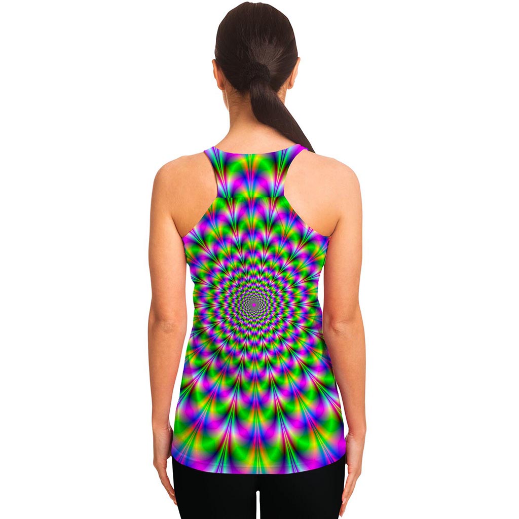 Stay cool and stylish with the versatile Neon Psychedelic Optical Illusion Women's Racerback Tank Top. Designed for women who prioritize comfort and functionality, this racerback tank top is the perfect addition to your active and casual wardrobe. Whether you’re working out, running errands, or relaxing at home, this tank top offers a sleek and flattering fit that keeps you looking great and feeling confident.