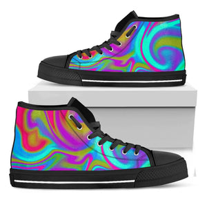 Liquid Holographic Trippy Print Black High Top Sneakers