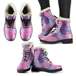 Blue Purple Cosmic Galaxy Space Print Faux Fur Leather Boots