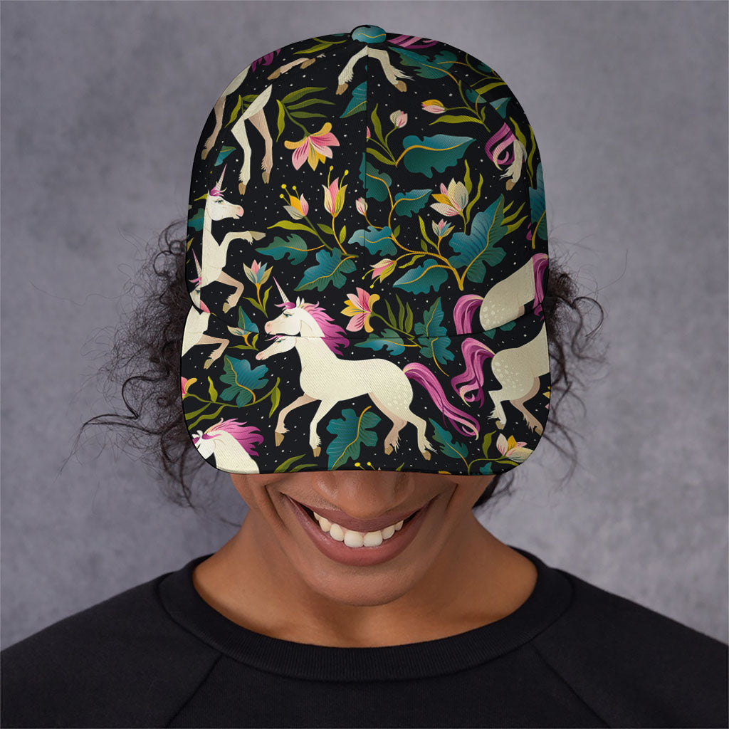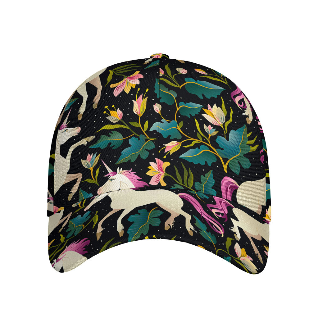 Top off your look with the stylish and functional Night Floral Unicorn Pattern Print Baseball Cap. Designed for comfort and durability, this baseball cap is the perfect accessory for casual outings, outdoor activities, or simply elevating your everyday style. Its sleek design and practical features make it a wardrobe essential for anyone who values both form and function.