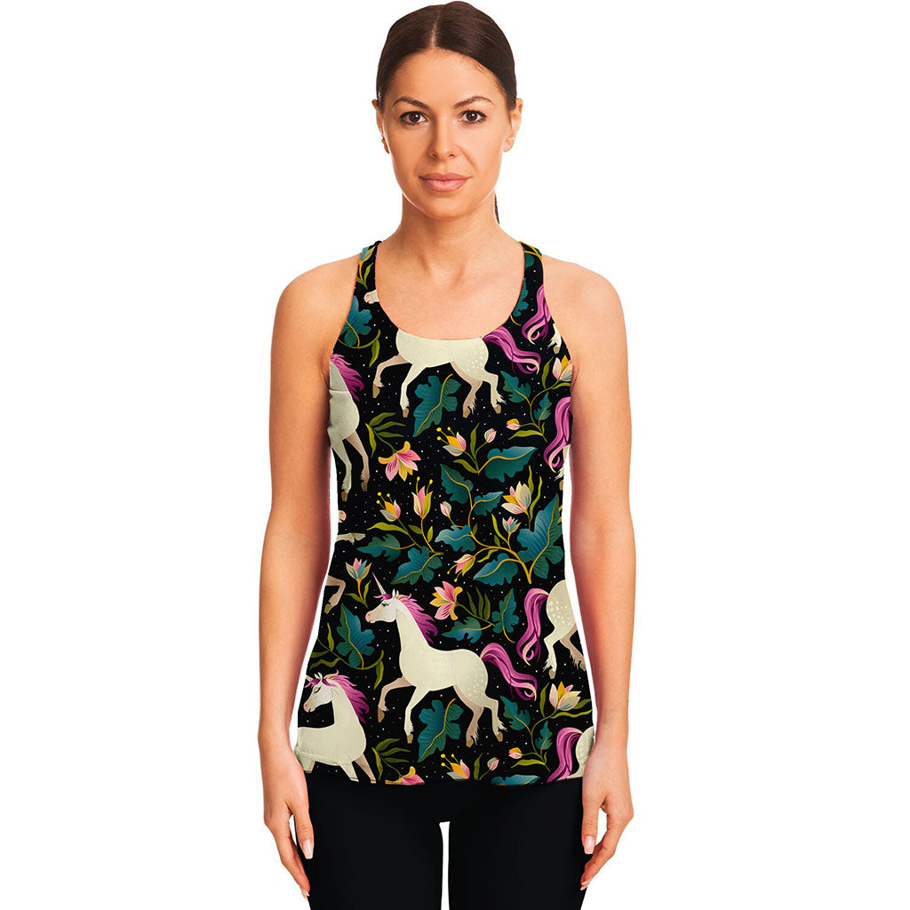 Stay cool and stylish with the versatile Night Floral Unicorn Pattern Print Women's Racerback Tank Top. Designed for women who prioritize comfort and functionality, this racerback tank top is the perfect addition to your active and casual wardrobe. Whether you’re working out, running errands, or relaxing at home, this tank top offers a sleek and flattering fit that keeps you looking great and feeling confident.