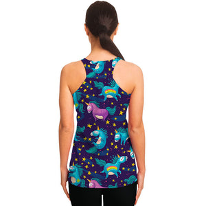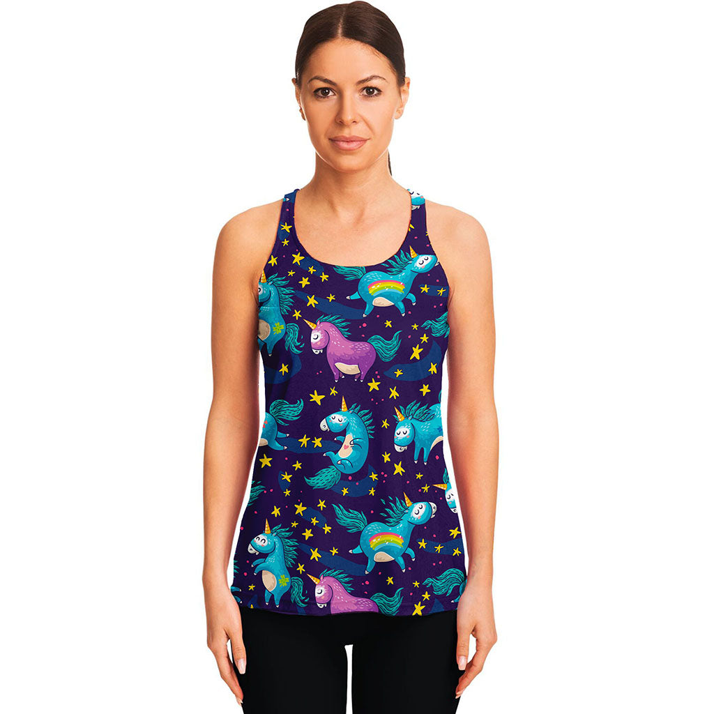 Stay cool and stylish with the versatile Night Star Unicorn Pattern Print Women's Racerback Tank Top. Designed for women who prioritize comfort and functionality, this racerback tank top is the perfect addition to your active and casual wardrobe. Whether you’re working out, running errands, or relaxing at home, this tank top offers a sleek and flattering fit that keeps you looking great and feeling confident.