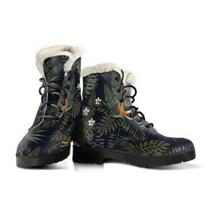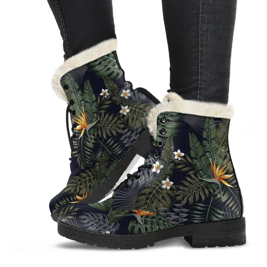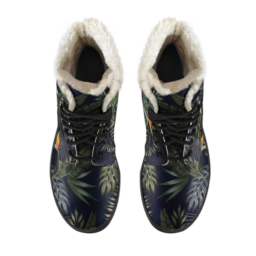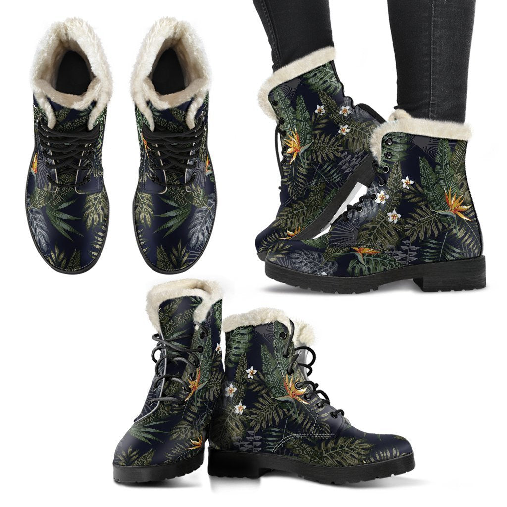 Combine cozy warmth with standout style in the versatile Night Tropical Hawaii Pattern Print Faux Fur Leather Boots. Designed to keep you comfortable without compromising on fashion, these faux fur leather boots are a must-have addition to your footwear collection. Whether you’re braving chilly weather or adding an edgy touch to your outfit, these boots offer the perfect mix of practicality and personality.