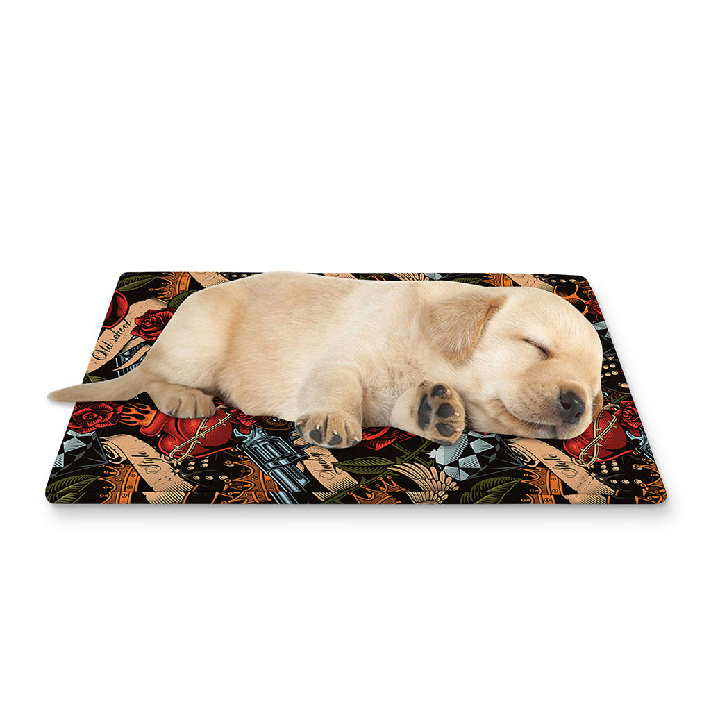 The Old School Tattoo Print Pet Cooling Mat Cover is ideal for small to medium-sized pets such as cats and dogs. Whether placed in a crate, on the floor, or in your car, it adds comfort without requiring any complex setup. It's a practical choice for pet owners looking for something stylish, functional, and easy to maintain.