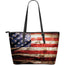 Vintage Grunge American Flag Patriotic Leather Tote Bag With Zipper
