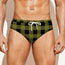Olive Green Buffalo Check Pattern Print Men's Swim Briefs