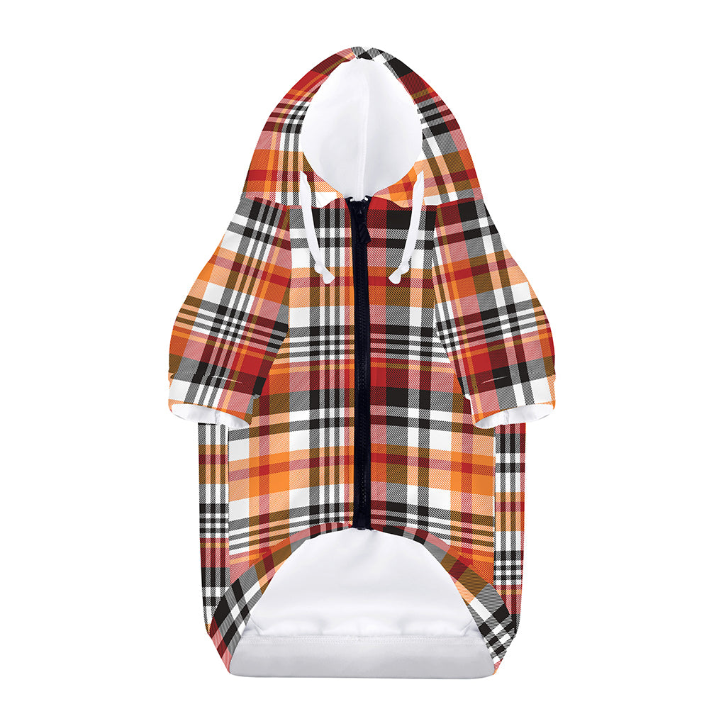 The Orange And Black Madras Plaid Print Dog Zip Up Hoodie is more than just pet clothing—it’s a way to express your style while offering practical benefits. From lounging at home to neighborhood strolls, this hoodie provides an easy wardrobe addition for pets that don't mind dressing up.