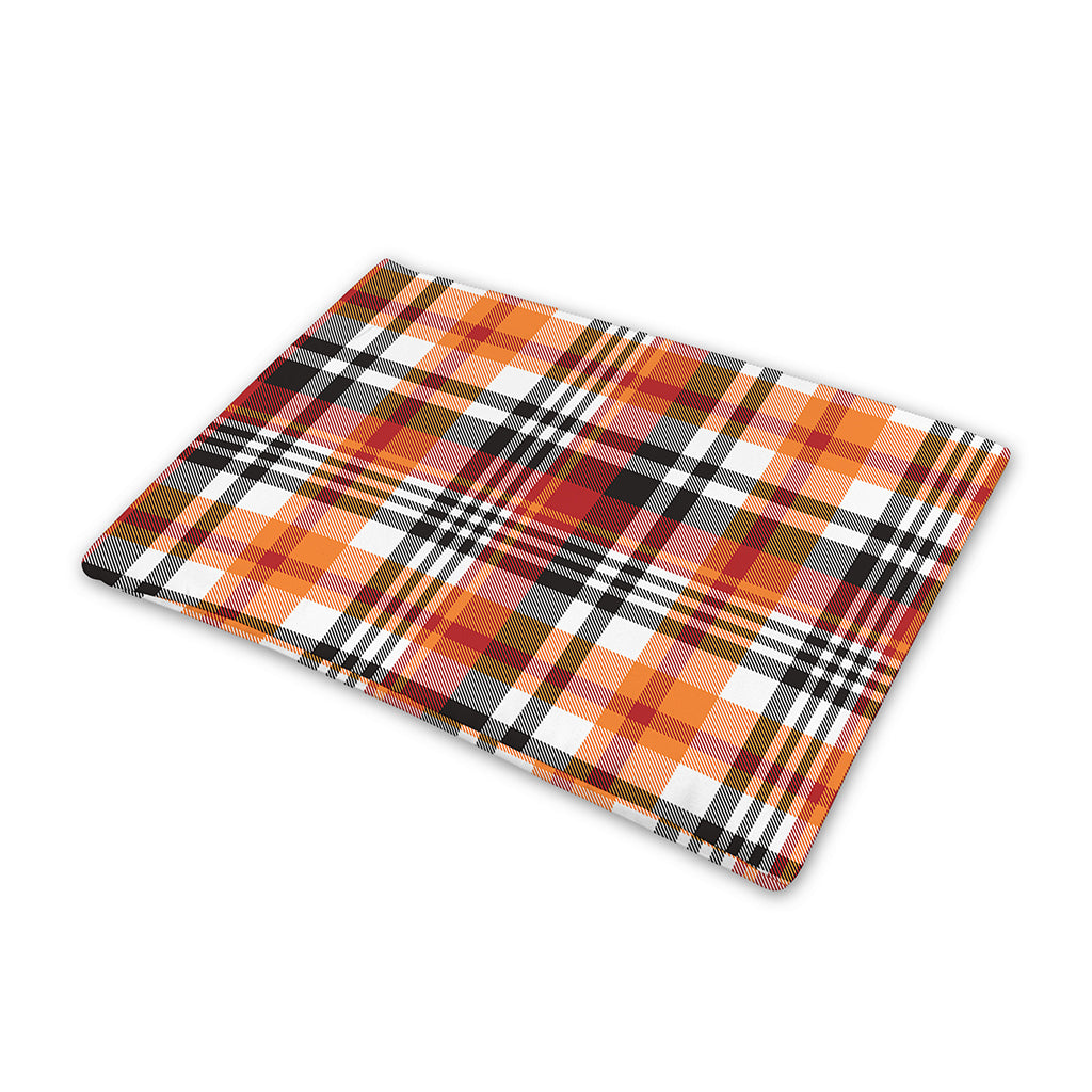 The Orange And Black Madras Plaid Print Pet Cooling Mat Cover is ideal for small to medium-sized pets such as cats and dogs. Whether placed in a crate, on the floor, or in your car, it adds comfort without requiring any complex setup. It's a practical choice for pet owners looking for something stylish, functional, and easy to maintain.