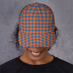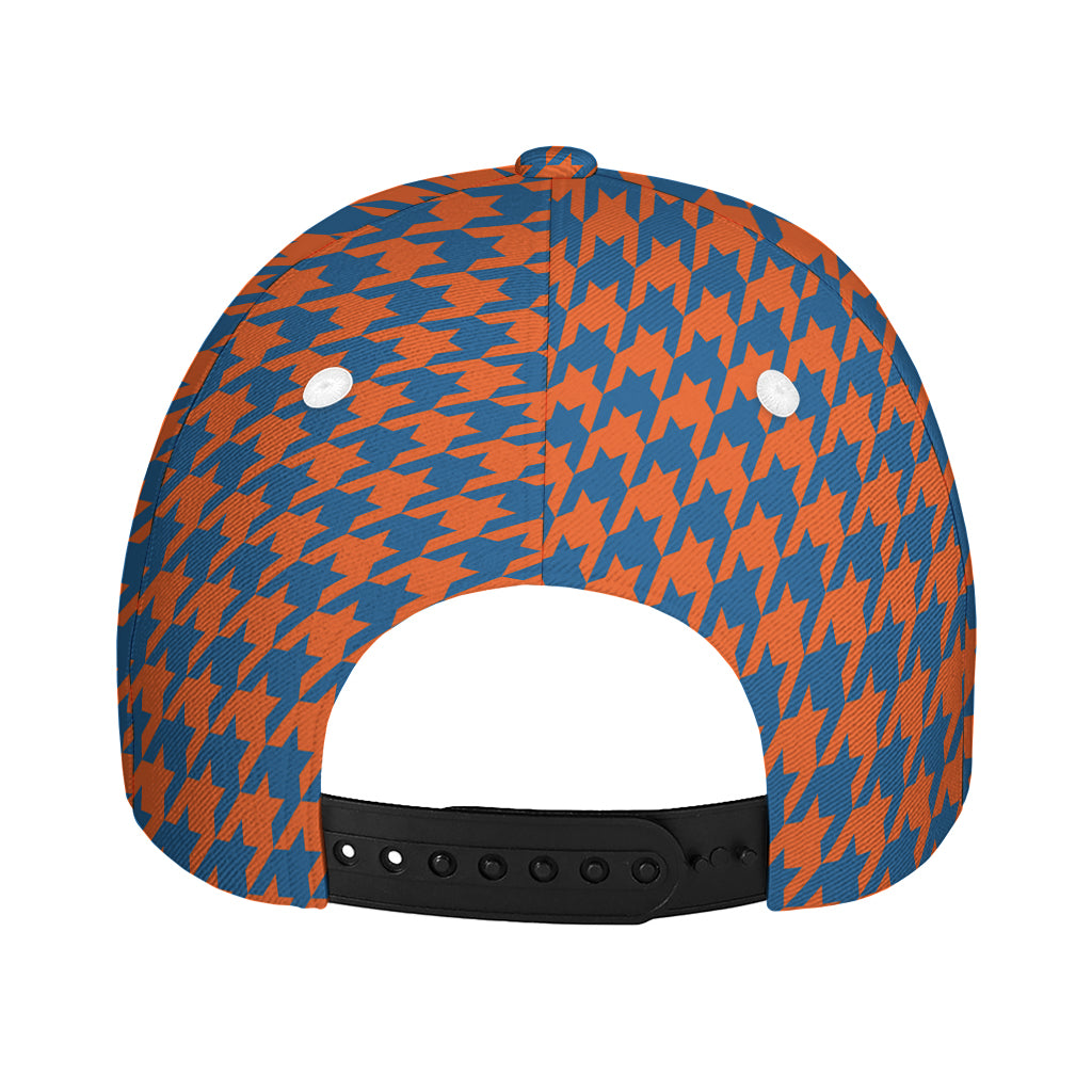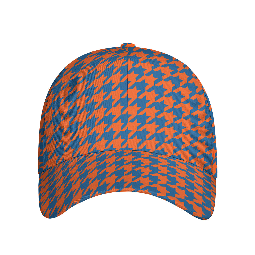 Top off your look with the stylish and functional Orange And Blue Houndstooth Print Baseball Cap. Designed for comfort and durability, this baseball cap is the perfect accessory for casual outings, outdoor activities, or simply elevating your everyday style. Its sleek design and practical features make it a wardrobe essential for anyone who values both form and function.