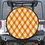 USE THE TIRE COVER SIZE CALCULATORAre you looking for unique tire covers? Check our Orange And White Argyle Pattern Print Leather Spare Tire Cover on GearFrost. Our tire covers are handcrafted to the highest quality standards and made-to-order for you!