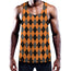 Orange Black And Grey Argyle Print Men's Workout Tank Top