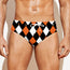 Are you looking for unique men's swim briefs? Check our Orange Black And White Harlequin Print Men's Swim Briefs on GearFrost. Our swim briefs are handcrafted to the highest quality standards and made-to-order for you!