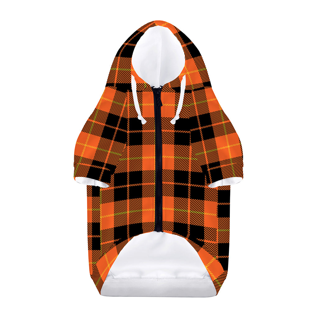 Keep your pet cozy and stylish with the Orange Black And Yellow Tartan Print Dog Zip Up Hoodie. Designed for everyday wear, this lightweight hoodie provides comfort and a bit of flair without overcomplicating your pet’s routine. Whether you're heading out for a walk or relaxing at home, it's a simple way to keep your furry friend warm and snug.