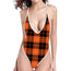 Orange Black And Yellow Tartan Print One Piece High Cut Swimsuit